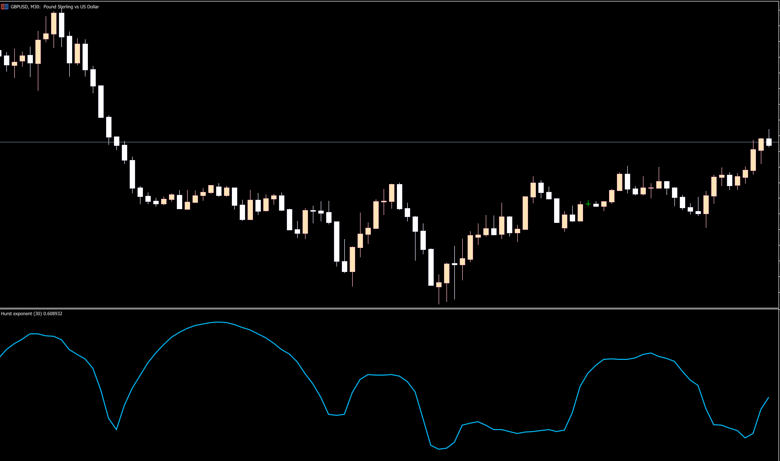 The indicator analyzes past price movements and calculates a statistical value known as the Hurst Exponent, which reflects the degree of price persistence or randomness in the market.