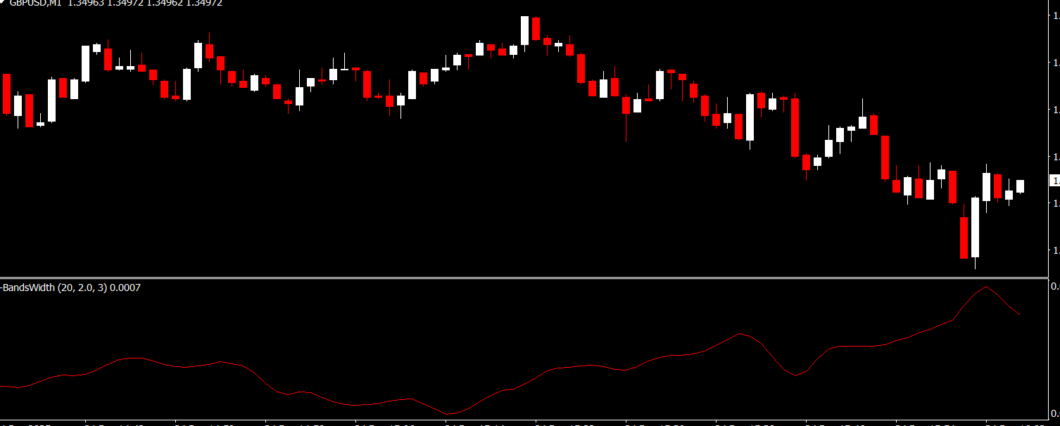 The histogram is calculated by subtracting the lower Bollinger Band from the upper Bollinger Band and expressing the result as a percentage of price. This makes it easier to compare volatility levels across different currency pairs and timeframes.