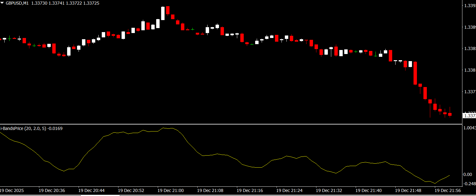 The iBands Price Indicator is especially useful for identifying trend-based trade setups. When the price is trending above the Moving Average and approaching the upper Bollinger Band, traders can anticipate possible profit-taking or reversal points. Conversely, when the price is below the Moving Average and near the lower Bollinger Band, it may signal a buying opportunity if the trend is about to reverse.