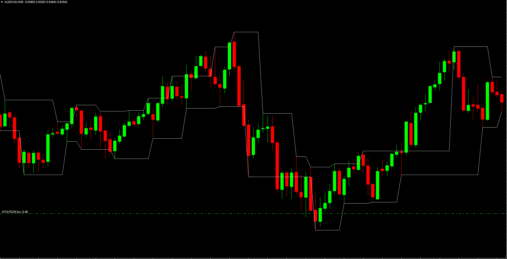 The iFractal Channel Indicator is based on fractal analysis. Fractals represent local highs and lows in price movement and are commonly used to identify turning points in the market.