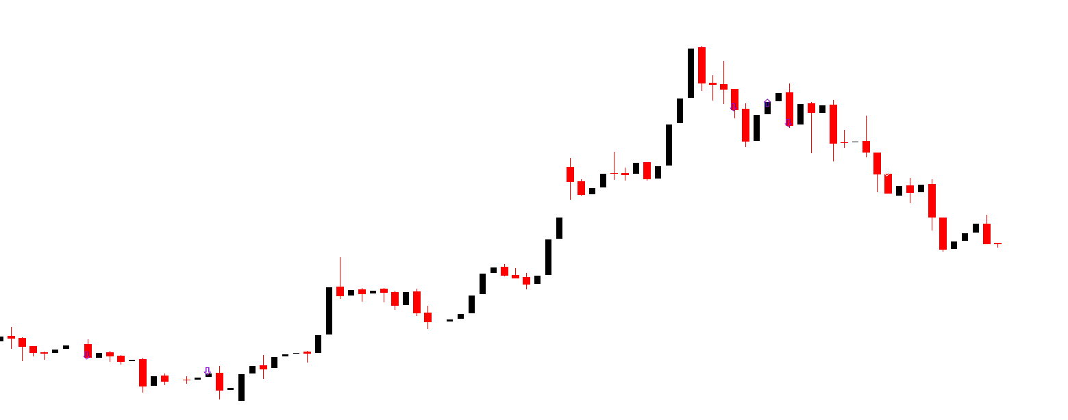 When the indicator detects a potential opportunity, it generates visual signals directly on the chart.