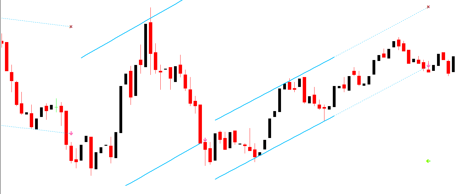 Observe the Price Action relative to the channel boundaries.