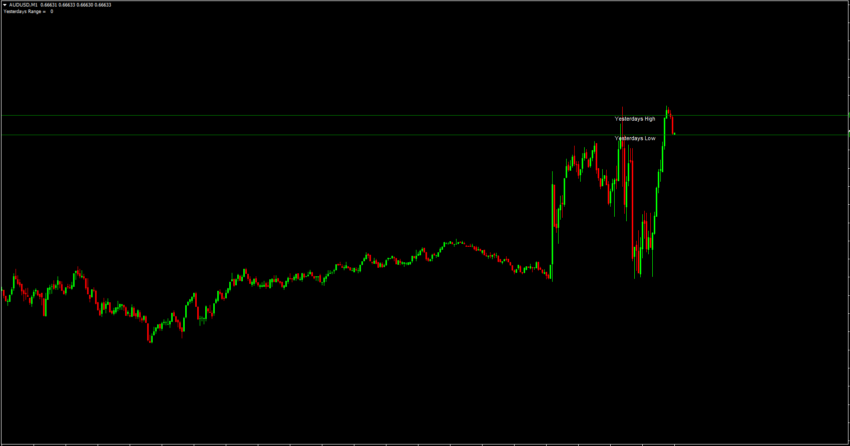 The indicator places one horizontal line at yesterday’s high and another at yesterday’s low. While it works on any timeframe—M1, M5, H1, H4, and more—the values always come from the daily candle, meaning they remain fixed for the entire day. This stability provides a powerful framework for intraday traders who rely on predictable reference points.