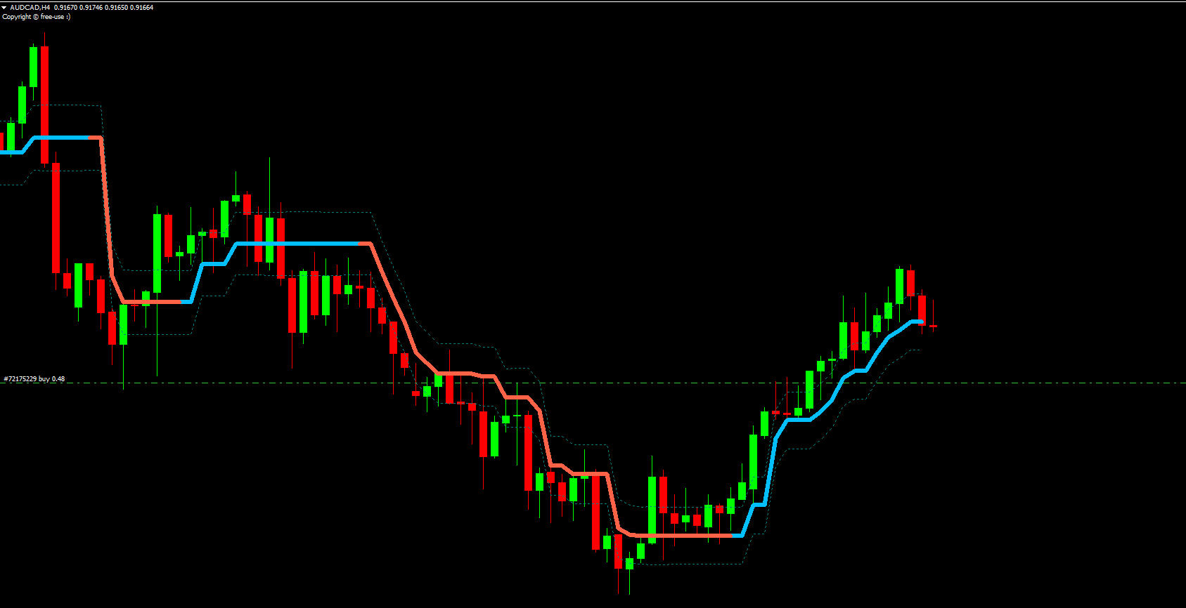 The dynamic line changes color based on trend direction. A blue line indicates bullish market conditions, while a red line signals bearish momentum. This color-based system allows traders to quickly identify trend changes without complex interpretation.