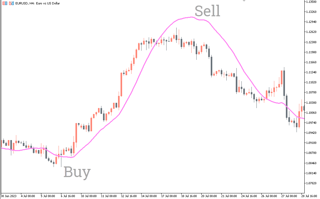 When the line moves downward, it signals a bearish trend — indicating potential sell trades.