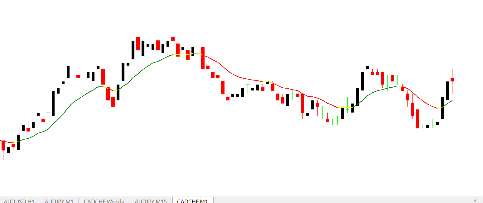 When the moving average turns green, it suggests bullish momentum. When it turns red, bearish pressure is present. A yellow line signals a range-bound or uncertain market, helping traders avoid low-probability trades.