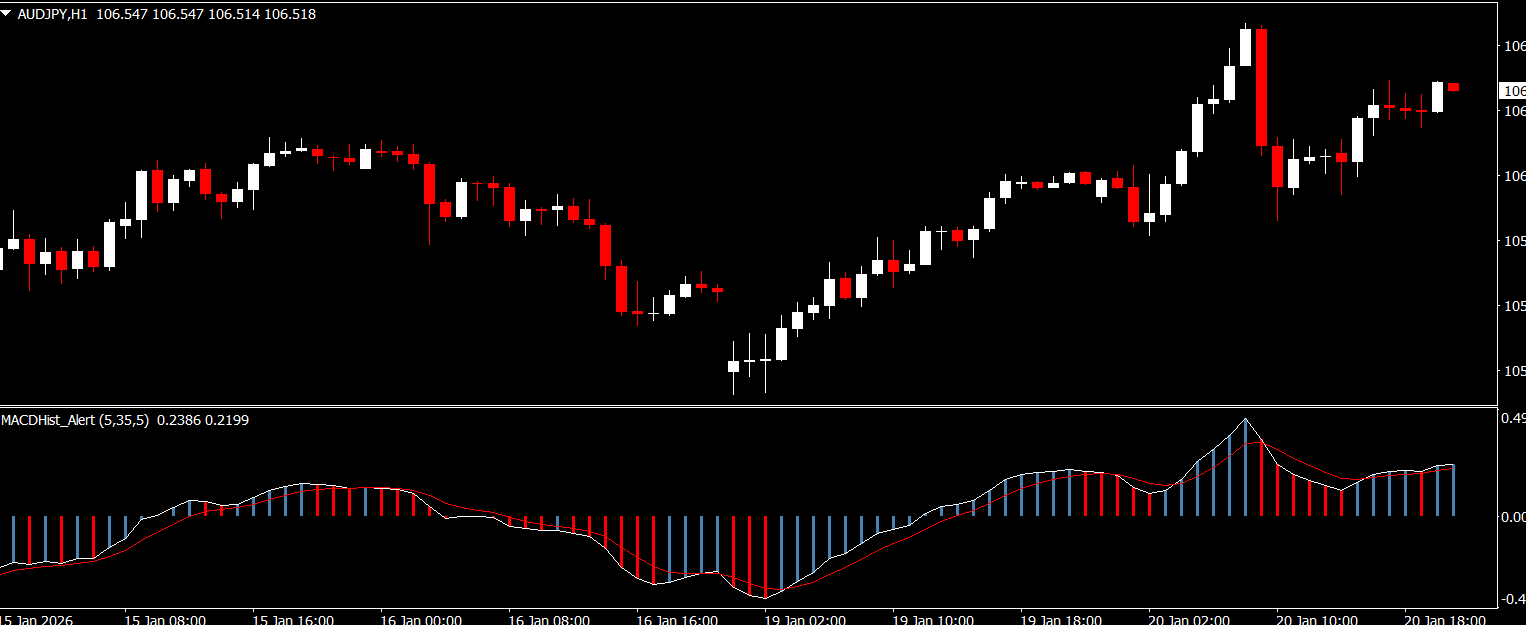 Understanding how the indicator works is straightforward. The MACD histogram measures the difference between the MACD line and the signal line. When the histogram changes color, it indicates a potential trend shift. For example, a change from red to green may signal a bullish trend, while green to red could indicate a bearish move. With EMA smoothing applied, the signals become more refined, filtering out minor fluctuations and false alerts.