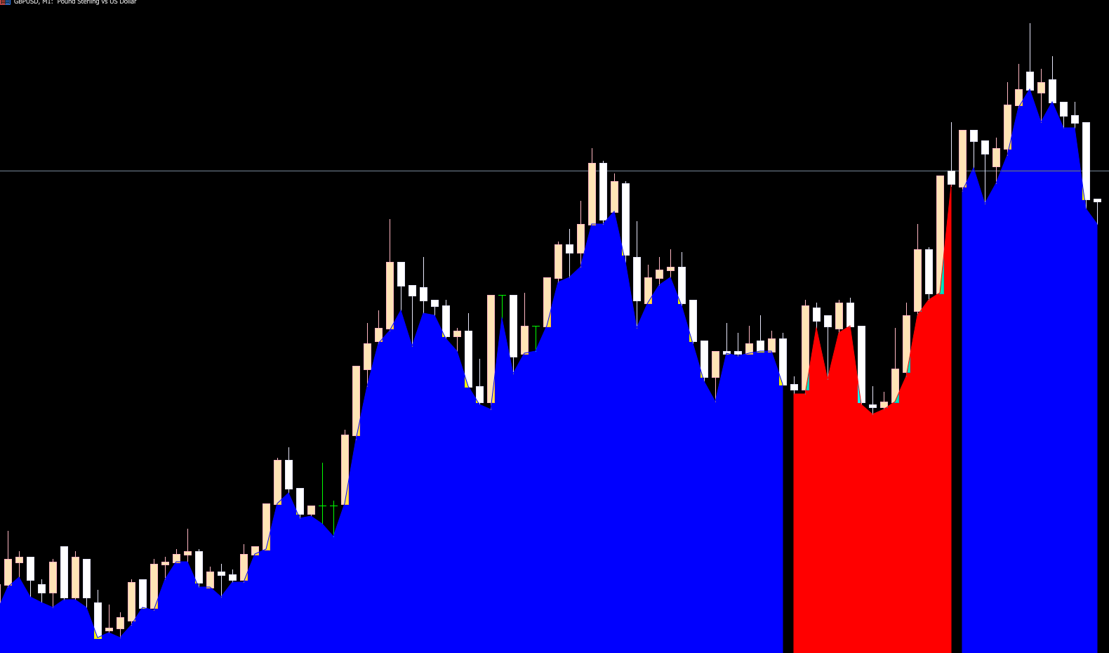 Fills the area under the price chart with colors to indicate trend direction
