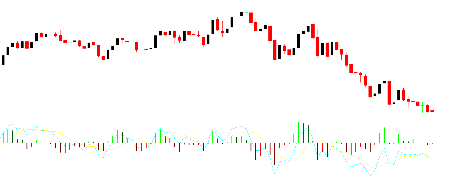 This visual format helps traders quickly understand momentum strength and direction without analyzing multiple indicator lines.