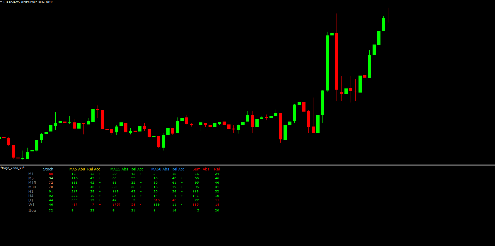 The Magic Vision Indicator for MT4 is a popular and reliable Forex trading tool designed to help traders analyze market conditions with greater clarity. By providing a clear visual representation of trend direction and overbought or oversold levels, this indicator enables traders to make more informed and confident trading decisions.