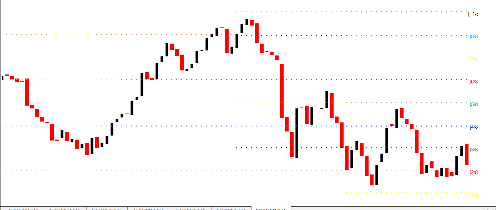 The Murrey Math Lines Fmod Indicator MT4 works by applying Murrey Math calculations to price data. It divides Price Action into predefined horizontal levels that act as potential support and resistance zones.