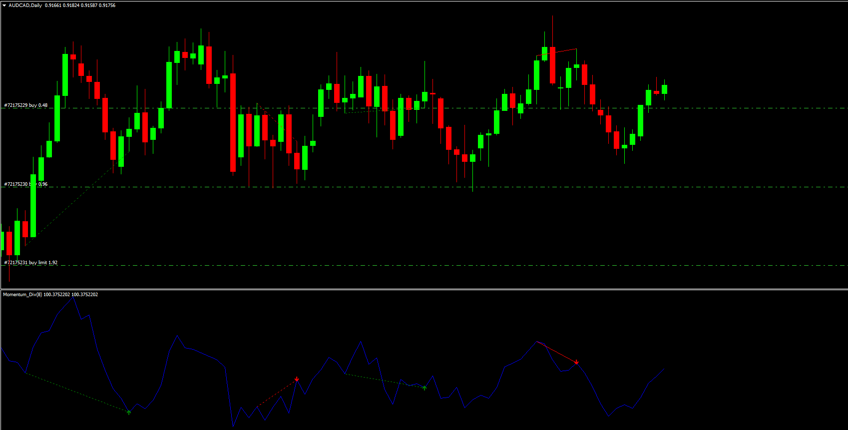 The Momentum Divergence Indicator is a valuable MT4 tool that helps traders identify potential reversals by analyzing the relationship between price and momentum. Its clear signals make it easy to spot trading opportunities and improve entry and exit timing.