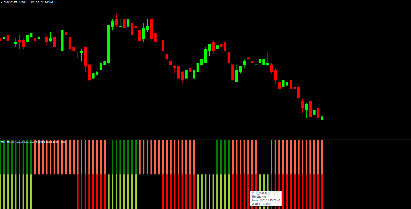 The indicator also improves trade timing. Instead of reacting late to price movements, traders can anticipate trend changes when MACD momentum begins shifting across multiple timeframes.