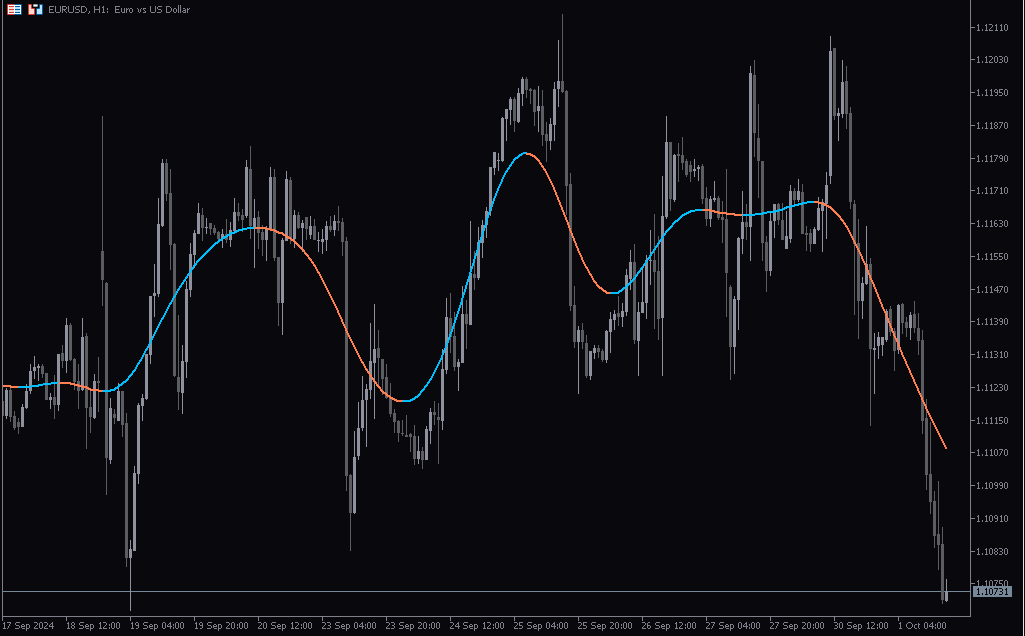 When plotted on your chart, the indicator generates a smooth curve that dynamically adjusts to market data: