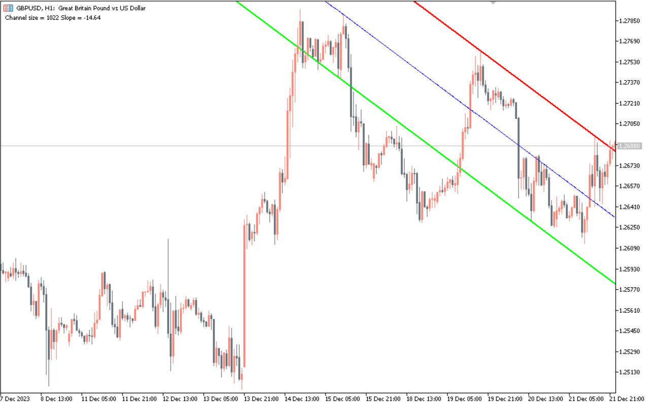 The upper and lower channel lines represent potential dynamic support and resistance levels.