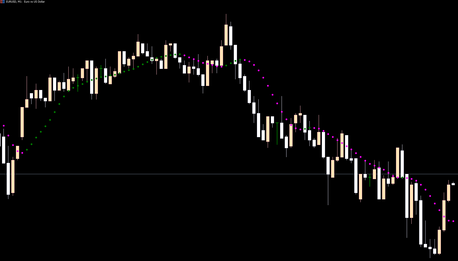 A bearish dot appears when downward momentum is detected, suggesting the start of a downtrend.