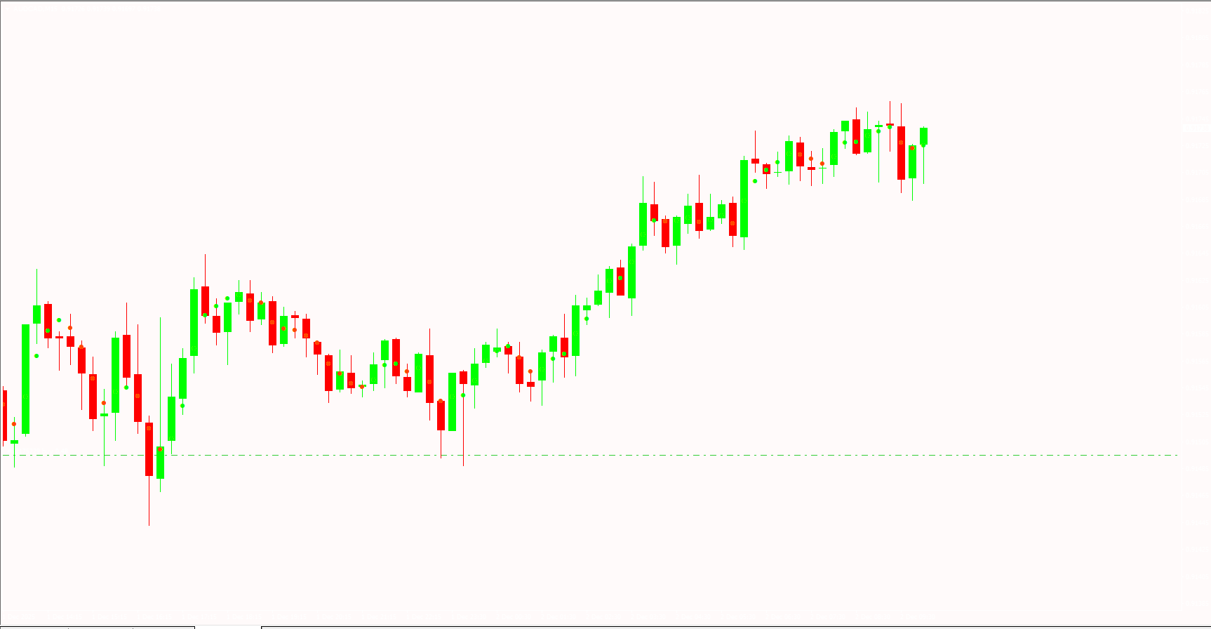 The Nonlagdot indicator offers a simple yet effective way to track market trends: