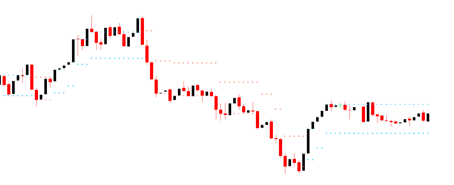 Price below the trailing stop – indicates a bearish trend