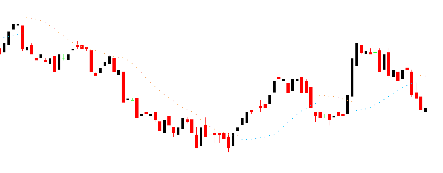 The Parabolic SAR of KAMA is a popular and free Forex Indicator for the MetaTrader 4 (MT4) platform. It combines the Parabolic SAR (Stop and Reverse) and Kaufman Adaptive Moving Average (KAMA) to provide reliable trend signals and trading guidance