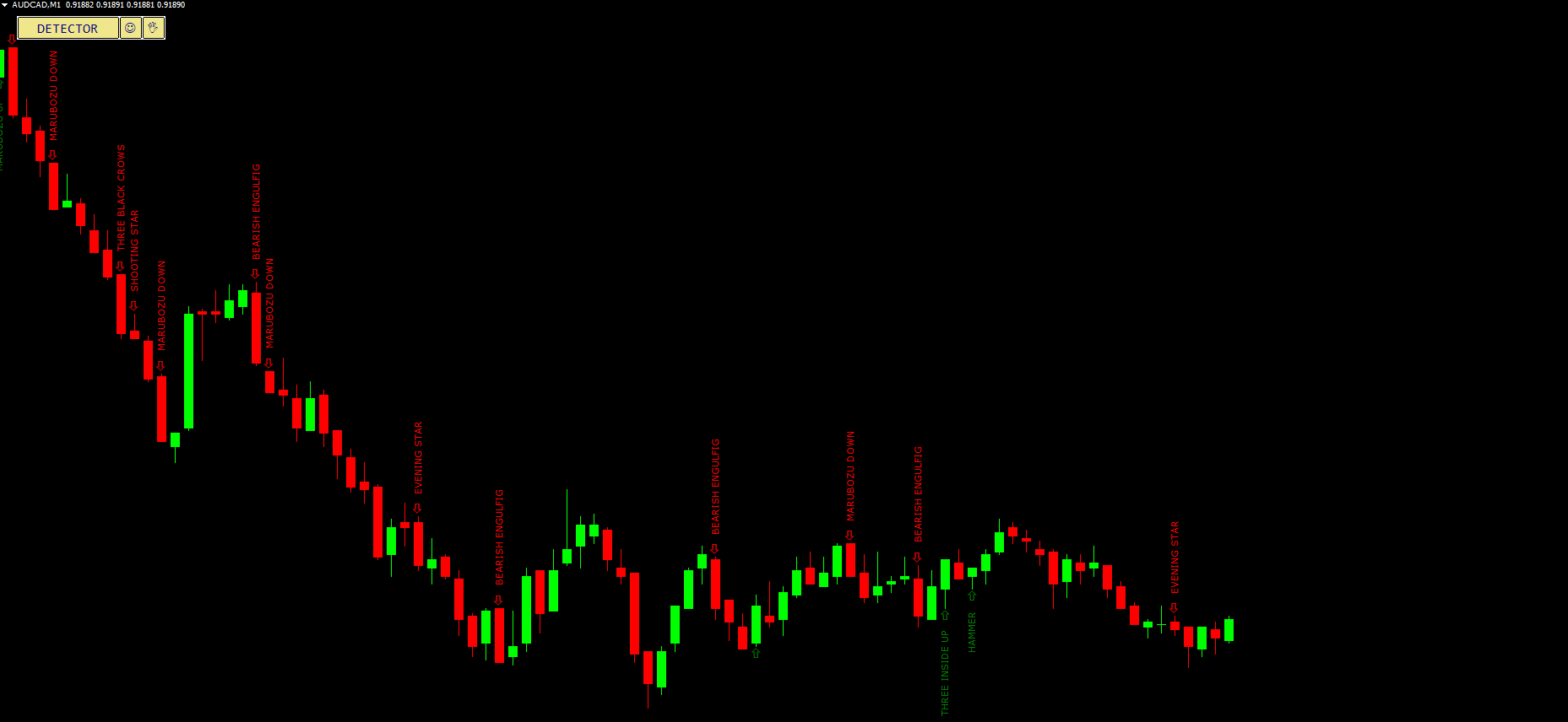 The Pattern Detector Indicator for MT4 is one of the most advanced and accurate tools for automatically identifying candlestick patterns on MetaTrader 4. It scans the market in real time and highlights bullish and bearish formations directly on the chart, making it ideal for both beginners and experienced traders.