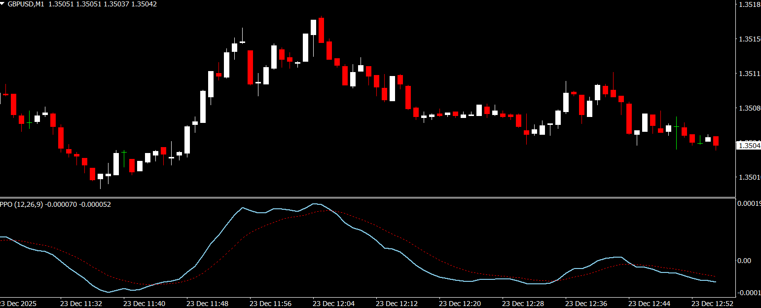 The Percentage Price Oscillator is effective at showing Trend Strength and direction. Rising PPO values suggest increasing bullish momentum, while falling values indicate strengthening bearish pressure.