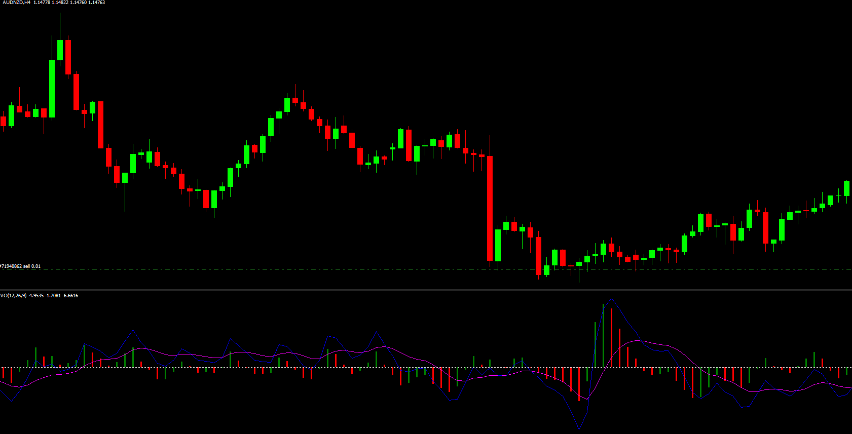 In most default settings, the indicator subtracts the 26-period EMA of volume from the 12-period EMA of volume. The result is plotted as a line that fluctuates above and below a zero level, giving traders a clear view of increasing or decreasing volume momentum.