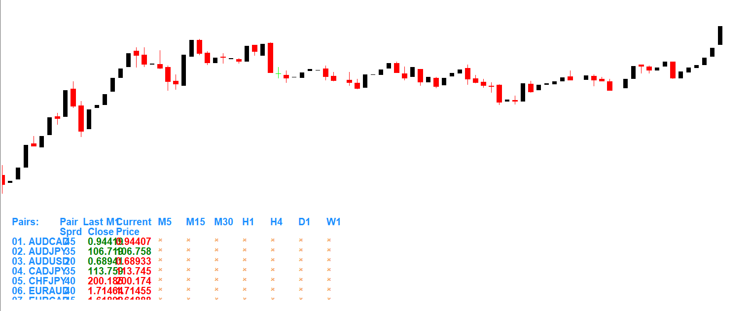 A built-in chart displays the price action of the selected currency pair. Traders can visually analyze price movements while monitoring indicator data from the same screen.