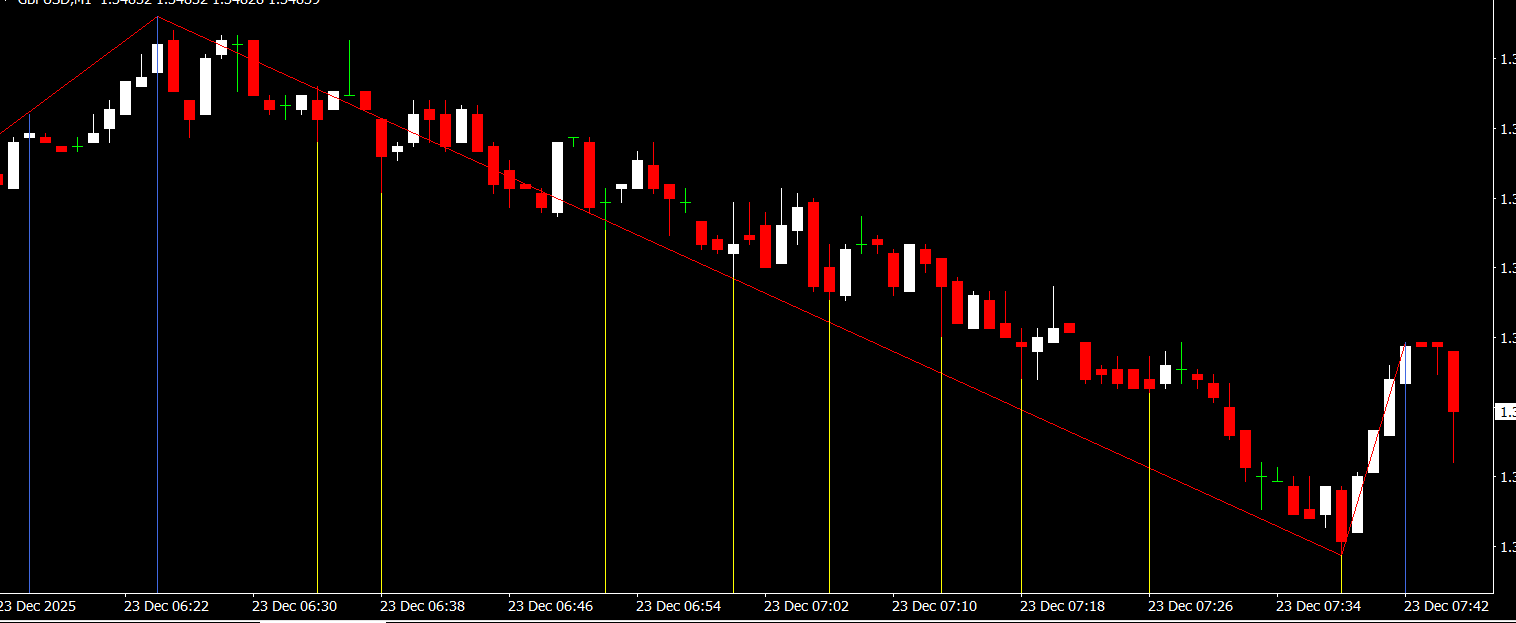Reversals are signaled when the Zigzag line breaks and a new high or low is formed. This allows traders to anticipate trend changes and plan exit or entry points.
