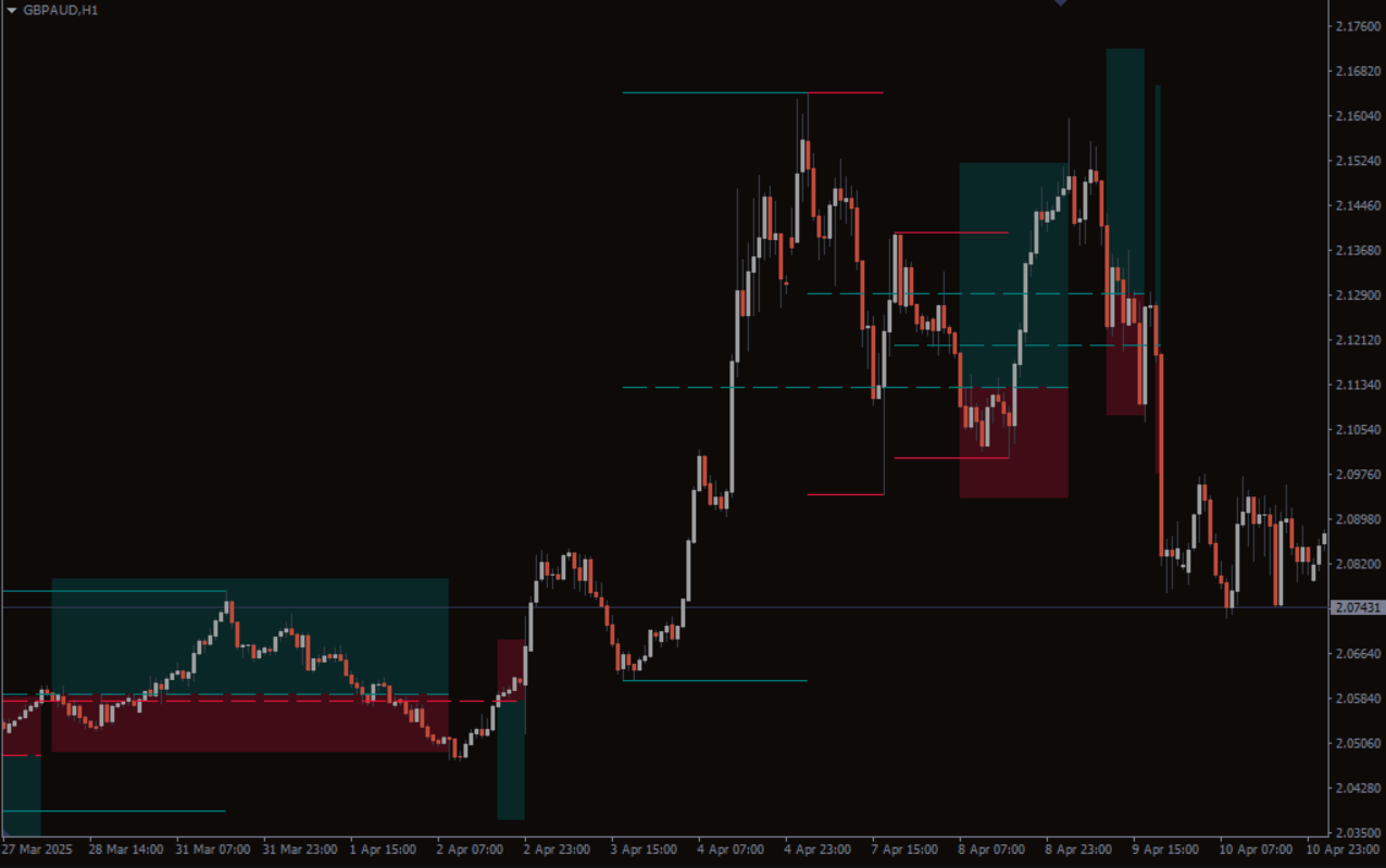 The indicator identifies historical swing points and calculates the average price range where retests are likely to occur. Once a range is defined, the tool plots the midpoint, upper, and lower bounds of the range, giving traders a clear visual guide.