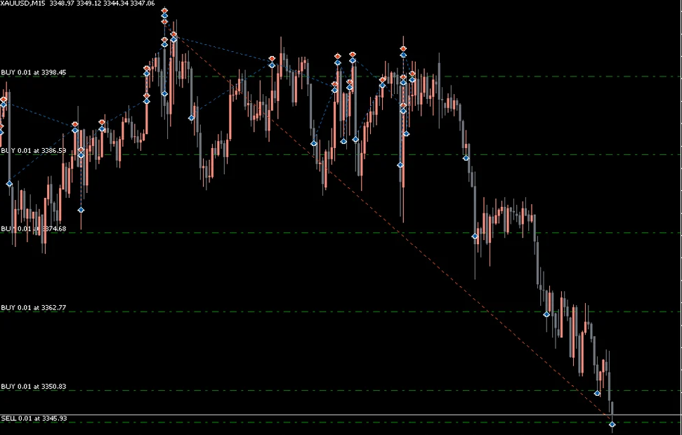 Grid Recovery: Additional trades are placed at pre-calculated intervals during retracements, allowing for averaging and optimized exits.