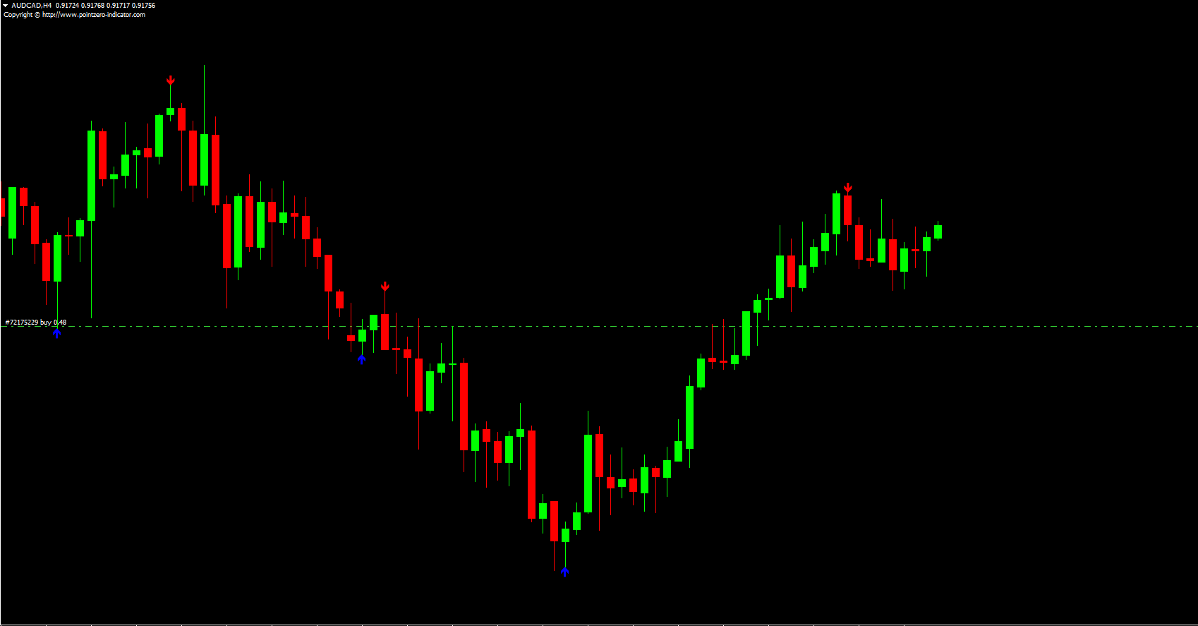 When these conditions are met, the indicator plots arrows directly on the chart, making the signals easy to identify.
