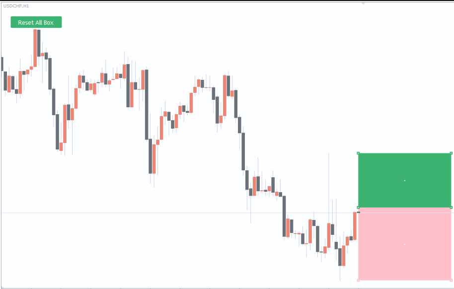 Once applied, the script automatically plots a box on your open trade. Key features include: