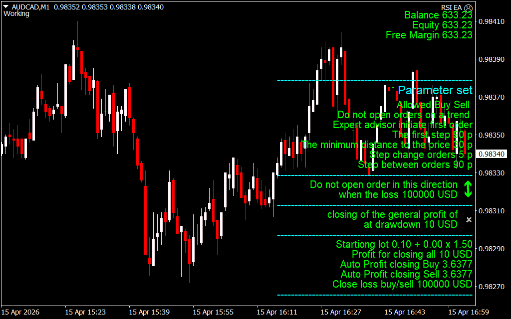 The RSI EA is not just a simple alert system; it is a comprehensive trading solution. By leveraging the core principles of momentum and mean reversion, the EA identifies points where Price Action has become statistically overextended. As seen in the recent AUD/CAD M1 chart analysis, the system operates with a highly sophisticated "Parameter Set" that goes far beyond basic indicator readings.