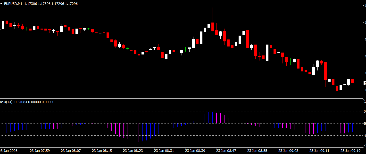 The indicator combines the power of the Relative Strength Index (RSI) with the Jurik Moving Average (JMA) to deliver accurate trend analysis through colored bars and a dynamic RSX line.