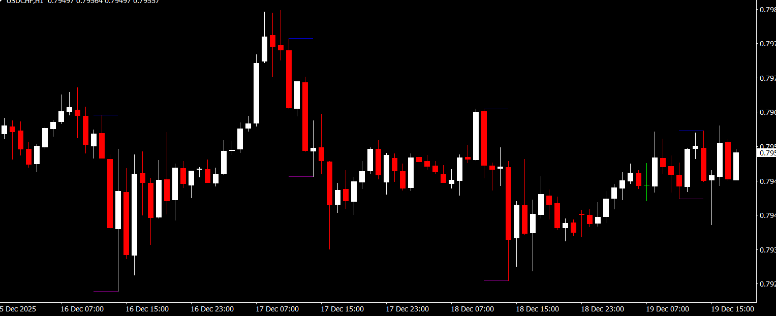 The indicator plots zone breakout levels directly on the chart using: