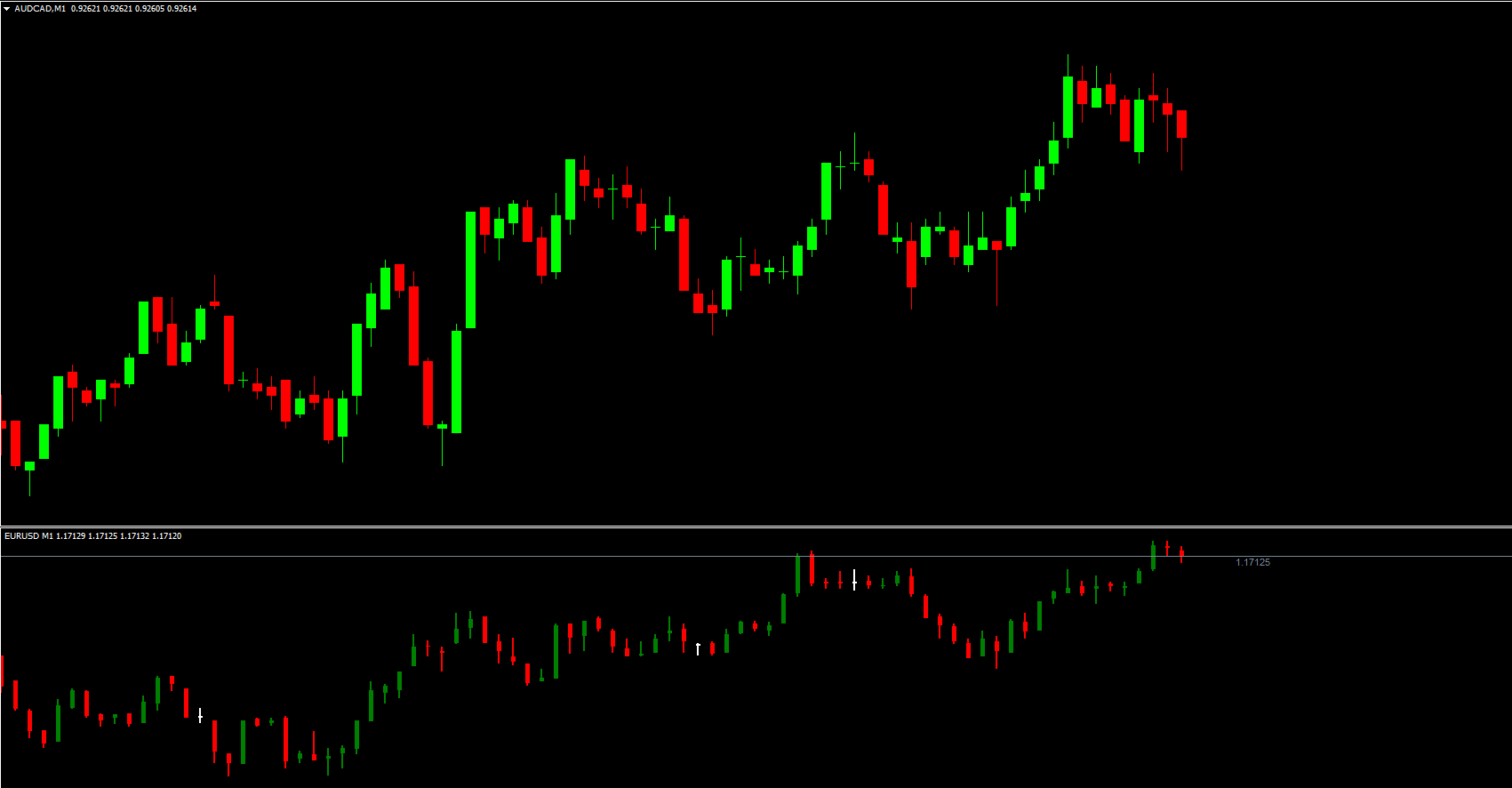 The Second Chart Indicator overlays two synchronized charts on a single MT4 window:
