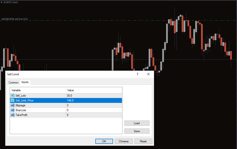 If the current price of EUR/JPY is 142, you can set the Sell Limit order at 146. Once the price rises to 146, the order becomes a live sell position automatically.