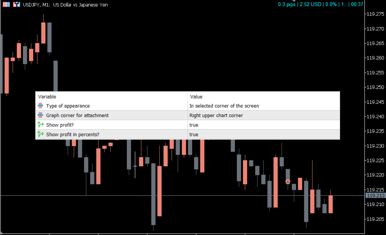 While the indicator is highly useful, it has one limitation: it does not display profit or loss in pips for individual positions when multiple positions are open on the same currency pair. However, for most traders, the aggregate data is sufficient for monitoring trade performance effectively.