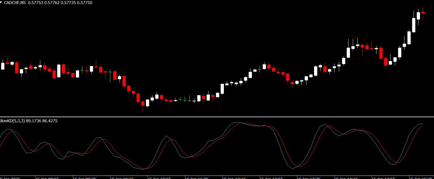 The Slow KD Indicator calculates the stochastic oscillator by comparing the current price of a currency pair to its range over a defined period. This produces two key lines on the chart: