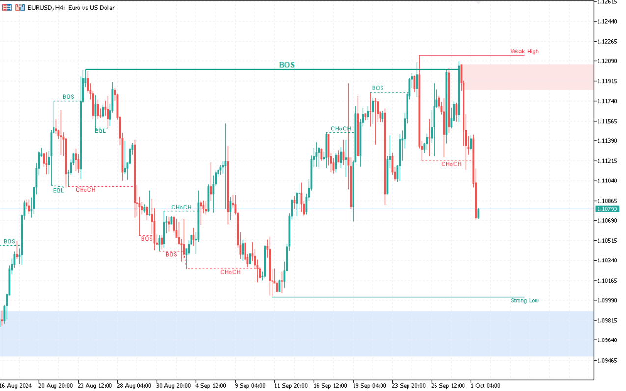 Change of Character (CHoCH): Indicates a potential reversal. Traders can anticipate market shifts and adjust positions accordingly.