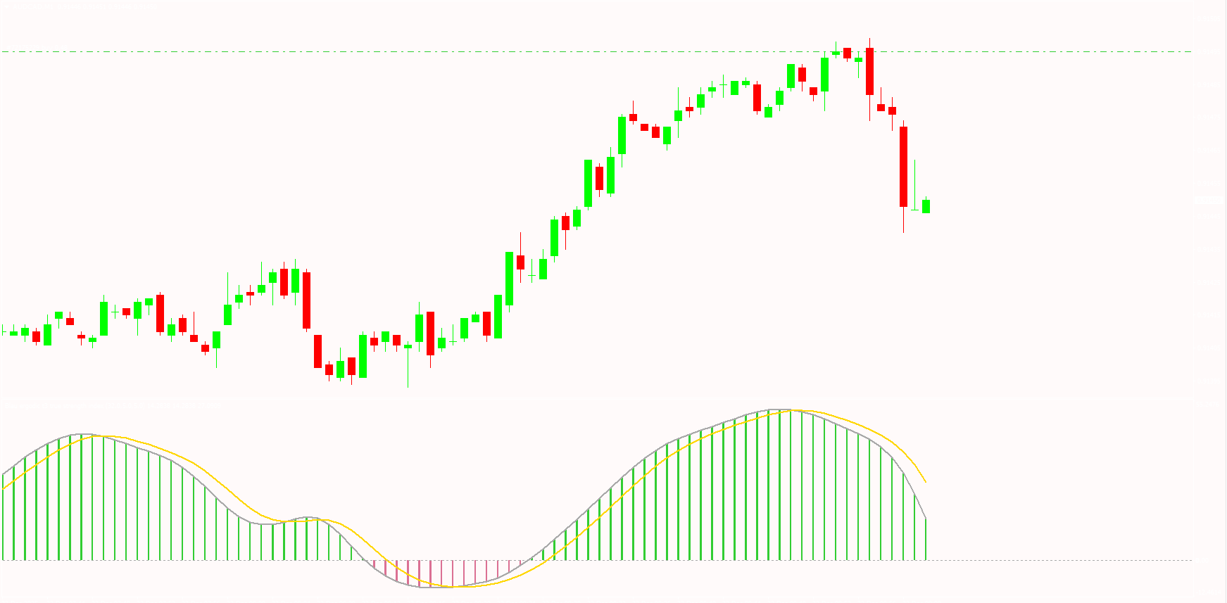The indicator is straightforward to interpret, with oscillator line and histogram displayed clearly on the MT4 chart.