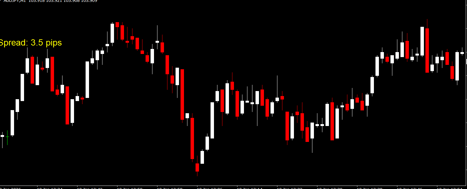 Displays real-time spread in five-digit pips