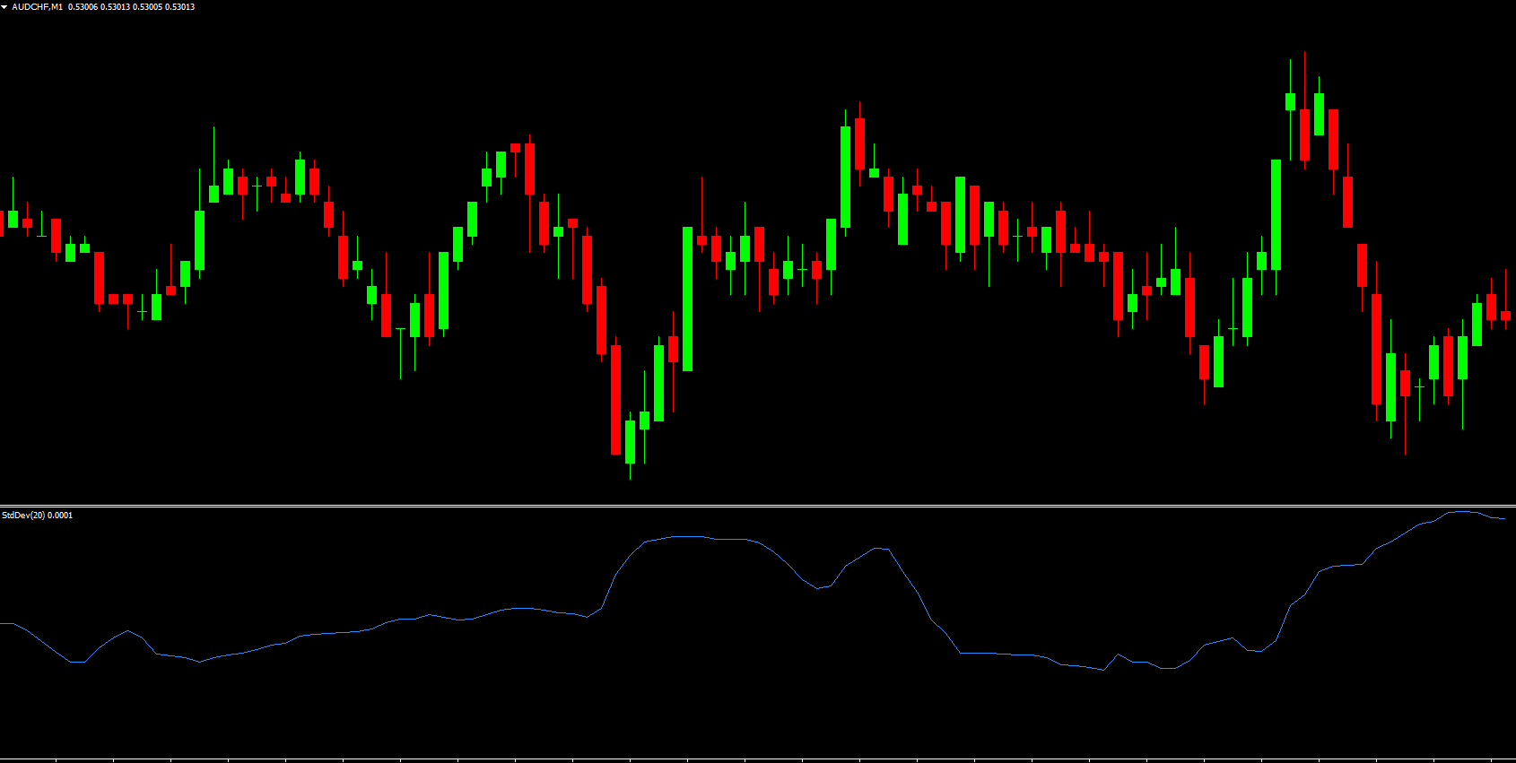 Standard deviation measures the dispersion of returns for a currency pair or market index. When price fluctuations increase, the standard deviation rises, signaling stronger market activity.