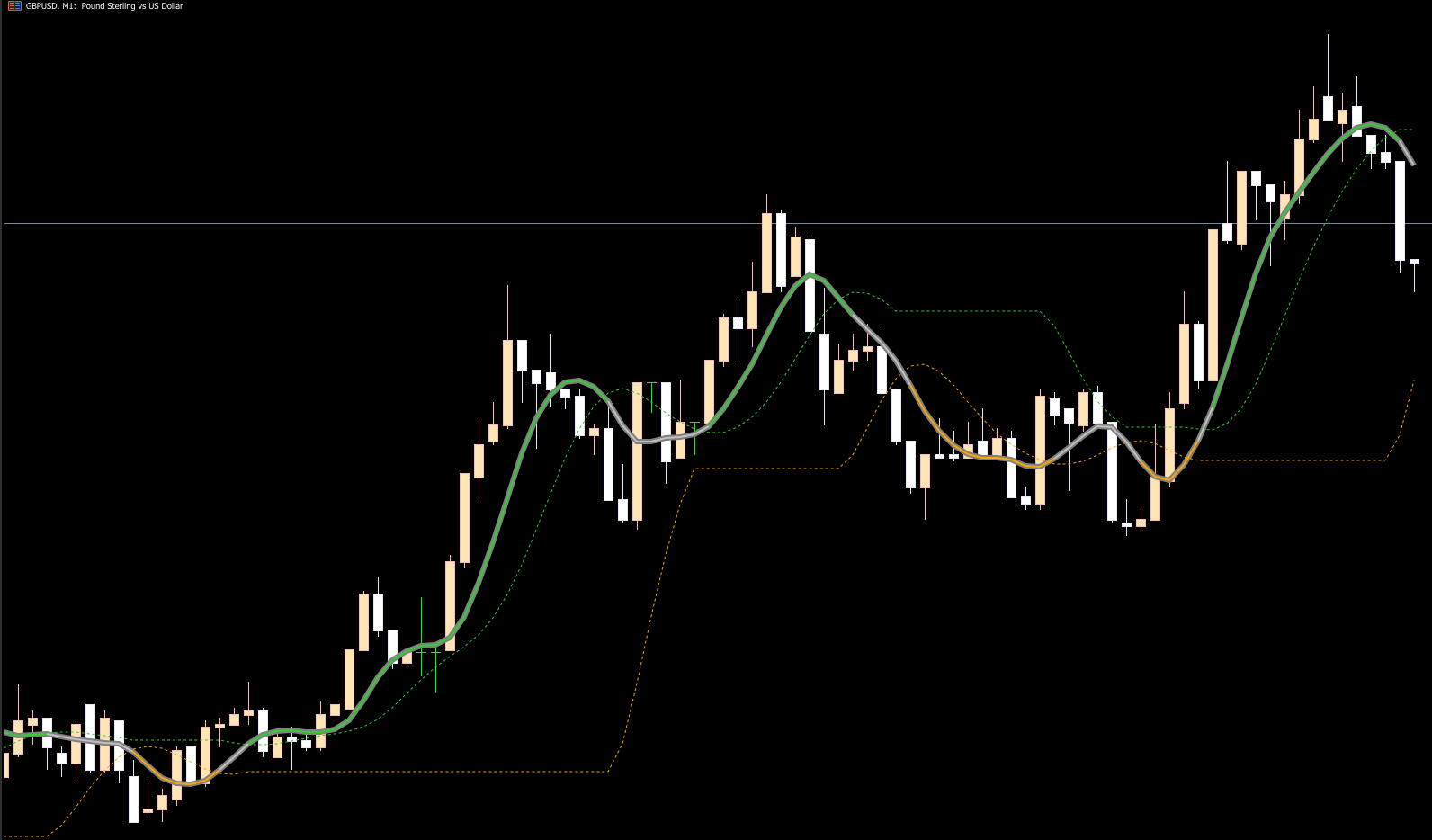 The result is a set of horizontal or slightly adaptive levels that act as potential support and resistance zones. When price approaches these areas, traders can prepare for either bounces or breakouts depending on confirmation signals.