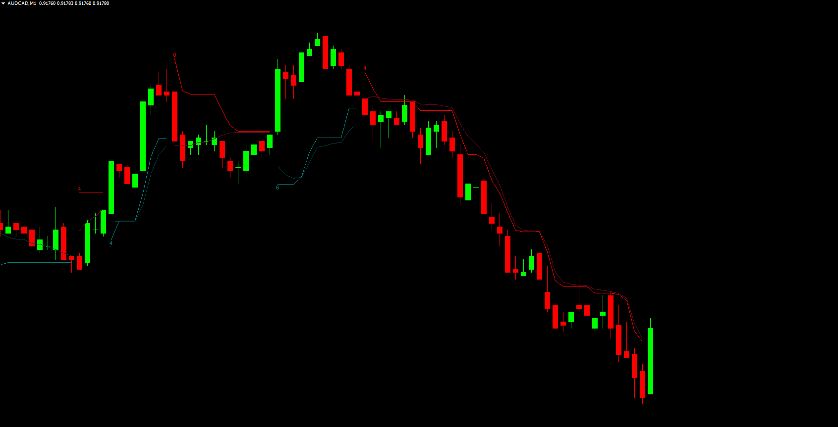 The red AI trailing stop forms above price