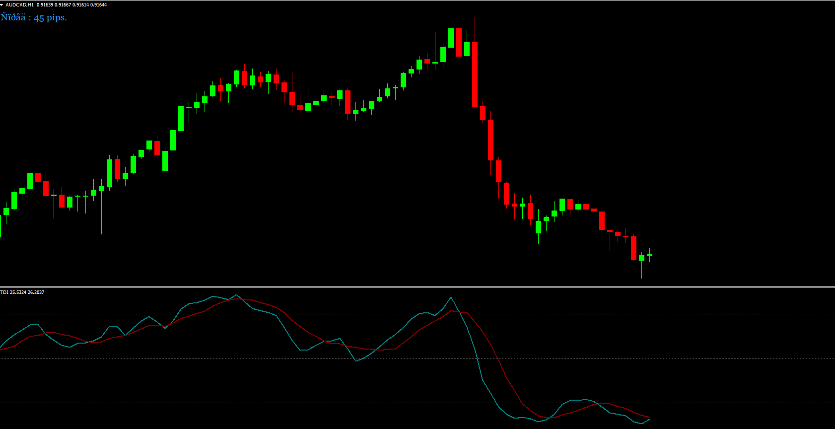 Red line crossing below the green line = potential short (sell) entry
