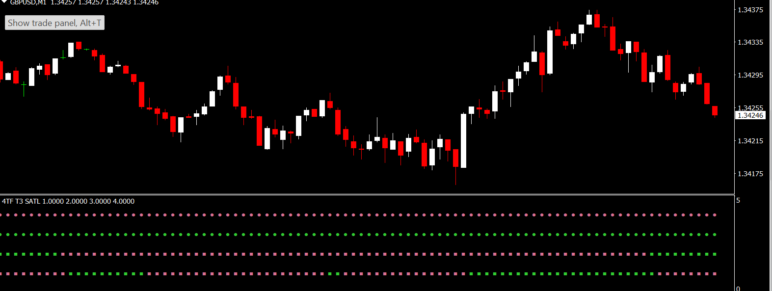The 4 TF T3 Satl Alerts Indicator is a free and popular Forex tool for the MetaTrader 4 (MT4) platform. Designed for traders who use multiple timeframes, this indicator simplifies trading by providing easy-to-read buy and sell signals based on T3 moving averages.