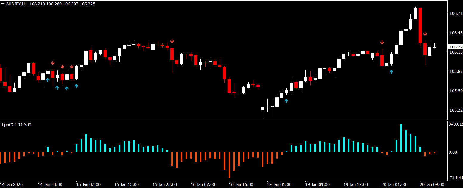 The Tipu CCI Indicator MT4 works by monitoring price movements relative to its average: