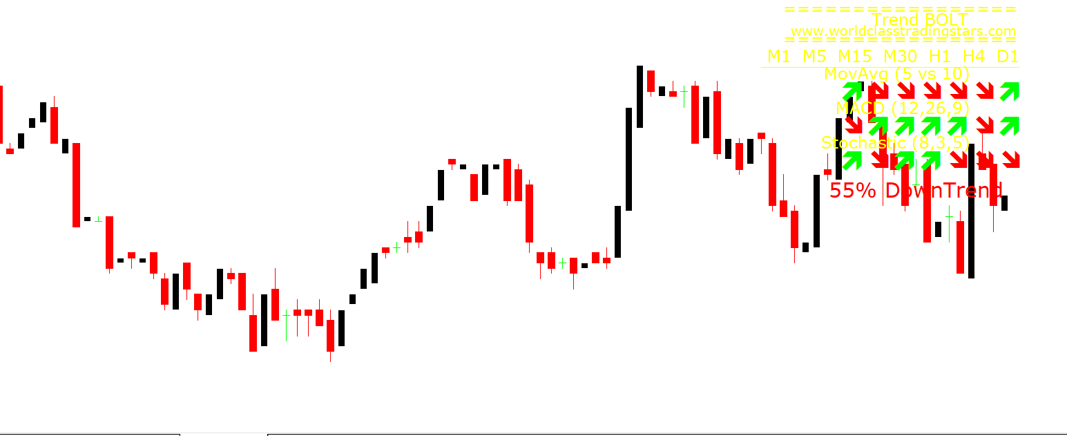 The Trend Bolt Panel Indicator is a useful and popular free Forex Indicator for the MetaTrader 4 (MT4) trading platform. It is designed to give traders a clear and structured overview of current market conditions by combining trend direction, trend strength, volatility, and market pressure into one easy-to-read panel.