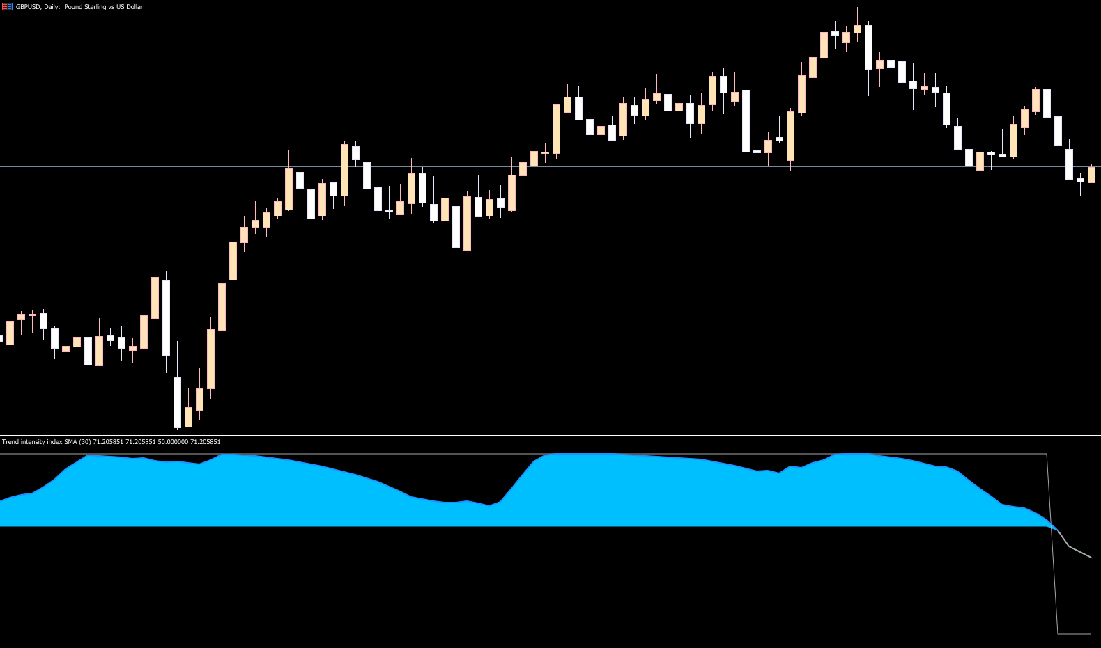 The Trend Intensity Index (TII) Indicator MT5 is a popular and free Forex tool that helps traders quickly identify trends in the market. Based on the Relative Strength Index (RSI) and combined with Moving Average Convergence Divergence (MACD), the TII provides a clear measure of Trend Strength and direction. This makes it easier for traders to determine optimal entry and exit points.